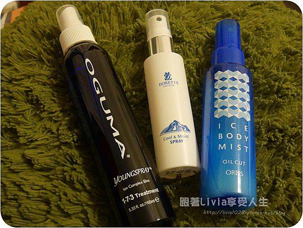 有ORBIS冰肌涼感身體噴霧、水美媒1.7.3噴年輕、DORETTA柏金冰川水導噴霧,