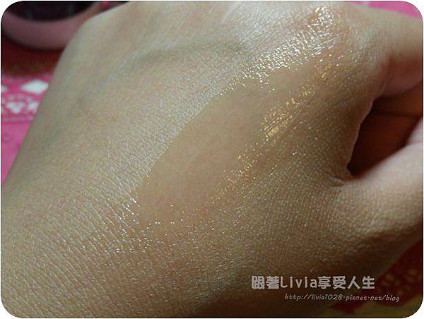 因為添加了覆盆子與番茄葉萃取的關係,質地顏色呈現一個淡淡粉紅色,看起來好好吃!(誤)